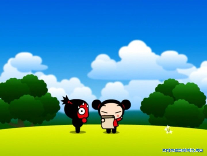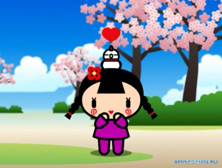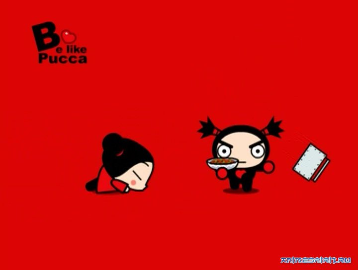 Описание: Пукка - маленькая девочка всего 10 лет отроду, живущая в Корее. А если быть точнее, то придумала Пукку Корейская студия Vooz. Занимаются они тем, что придумывают персонажей , придумывают им биографии, рисуют флэш-анимацию, и все это для чужих дядь и теть. А эти самые дяди и тети рисуют этих персонажей на майках, сумках, пеналах и заколках, и это лицензионное производство. Итак, если Пукка - девочка, то должен быть мальчик. И он есть. Зовут бой-френда Гарри, ему 12 лет. Он мастер боевых искусств и потомок ниндзя. Мечта всей его жизни - вернуть семье былую славу великих воинов. Однако Пукка выбрала его объектом своей любви, а это сильно отвлекает Гарри от его высокого предназначения. Глупенькая девчушка бегает за ним везде и всегда целует, а он от этого жутко краснеет и сердится. А еще у Гарри есть кот Мио. Он всегда ходит за хозяином хвостом. Кстати, котик очень полезный: зрачки у него - стрелки часов и показывают время. А у Пукка есть маленькая кошечка Яни, и, конечно, она любит кота Мио. А как Пукка целуется! Жаркий день. Гарри сидит на скамейке и читает книжки. Пукка приносит две порции мороженого - ему и себе. И оп-ля - нечаянным движением руки девочка пачкает щеку Гарри шоколадом. А потом быстро слизывает крошки и при этом нежно целует его.