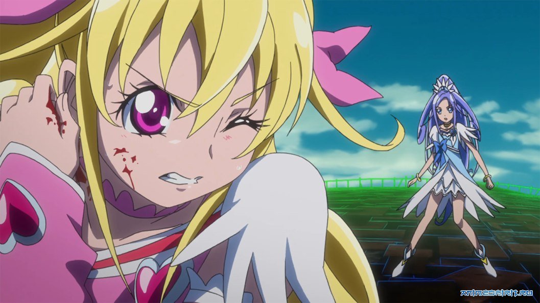 Описание: Мана безумно счастлива: ей передали свадебное платье, в свое время принадлежавшее ее матери и бабушке. Внезапно в ее жизни появляется таинственный незнакомец Мэтью, отправляющий Ману в прошлое. Девушка была рада вновь встретить бабушку и свою любимую собаку Маро, однако со временем она замечает, что кто-то изменил ее воспоминания. Если так будет продолжаться, будущее Маны окажется под угрозой! И теперь девушки Precure просто обязаны бороться - во имя своих воспоминаний, как прошлых, так и будущих!