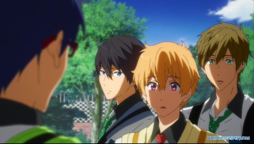 А дальше веселая троица встретилась в старшей школе Иватоби и узнала, что старый товарищ вернулся в Японию и поступил в школу Самэдзука, славную своими пловцами. Первая же встреча показала, что Мацуока изменился – стал резким, жестким, забыл прежнюю дружбу. И реванш ему не помог – Хару, не тренировавшийся два года, искреннее поздравил победителя, а Рин еще больше изошел злобой. «Будем лечить», - решили ребята. Но чтобы целебная сила воды и дружбы подействовала, нужно встречаться на дорожке, так что придется возродить клуб плавания Иватоби. Тут не обошлось без помощи Го Мацуока, младшей сестры Рина, которая очень хотела помочь брату… и, конечно же, имела свой интерес. Это в воде героям свобода, а на суше без женщин все равно никуда!