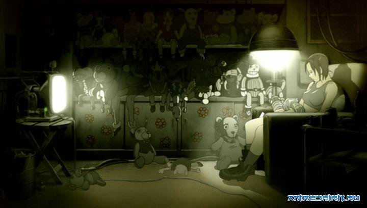 И наконец... Dimension Bomb! Действительно бомба! Просто выше всяких похвал. Рисовка, ну просто офигенна (особенно задние планы радуют). Сюжет. Только вроде бы начинаешь чего-то понимать, тут же все меняется! К концу уже перестаешь мыслить о чем-нибудь и просто наслаждаешься отличной картинкой, приятными героями. Танец под лампой шиииик Сначала думала, что о дружбе девочки с кем-то, кого многие не признают и шарахаются, а в итоге это вот становится тем, кто был на велосипеде... Но ему не нравится такая жизнь и он просит вернуться обратно. Возможно это был робот Нуу... это уже все мои догадки и бзики определенный плюс в копилку вечеринки!