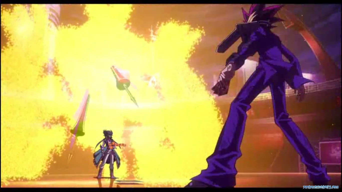 Описание: Во время езды с Джеком Атласом и Вороной Хоганом, звездный дракон Юсусея Фуду захвачен Парадоксом, таинственным турбодуэристом из будущего, во время турботоплива и превращен в грешного монстра. С помощью малинового дракона Юусей бегает за парадоксом, когда входит во временной промежуток и попадает в прошлое. За это время парадоксные поединки против Джейдена Юки, который все еще способен использовать власть Юбеля и Верховного Короля. Однако к этому времени Парадокс захватил и Дракона Кибер-Энда, и Радужного Дракона, переполнив Джейдена. Он спасен благодаря Юсусую и малиновому дракону. Джейден сообщает Юсусею об истинных намерениях Парадокса. Украв различных монстров со временем и сделав их темными, он планирует убить Максимиллиона Пегаса, создателя Duel Monsters, не допуская создания игры и не допуская, чтобы события всех трех серий никогда не произошли. Юсусей и Джейден соглашаются продолжить Парадокс, который ведет их в прошлое и вызывает встречу с королем Игр Юджи Муту. Однако к моменту прибытия Юусея и Джейдена Парадокс уже напал на свое время, предположительно убив дедушку Пегаса и Югия, а также украв Белого дракона с голубыми глазами и Черного дракона с красными глазами. Объяснив Юджи все, он соглашается сражаться с Юсусеем и Джейденом против Парадокса в поединке три на один, чтобы освободить захваченных монстров и спасти мир и само время, пока еще не стало слишком поздно.