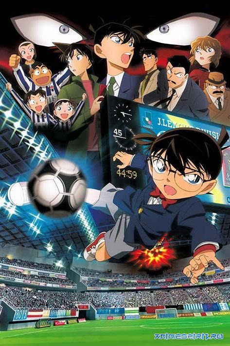 Описание: Под окнами детективного агентства Мори взрывается автомобиль, а неизвестный преступник требует по телефону от знаменитого детектива расшифровать код, в противном случае взорвется ещё одна бомба и будет множество жертв. Что делать и как быть с коварными замыслами преступника? На это предстоит найти ответ Эдогава Конану и не забыть поболеть за любимую команду в футбольном матче японской лиги.