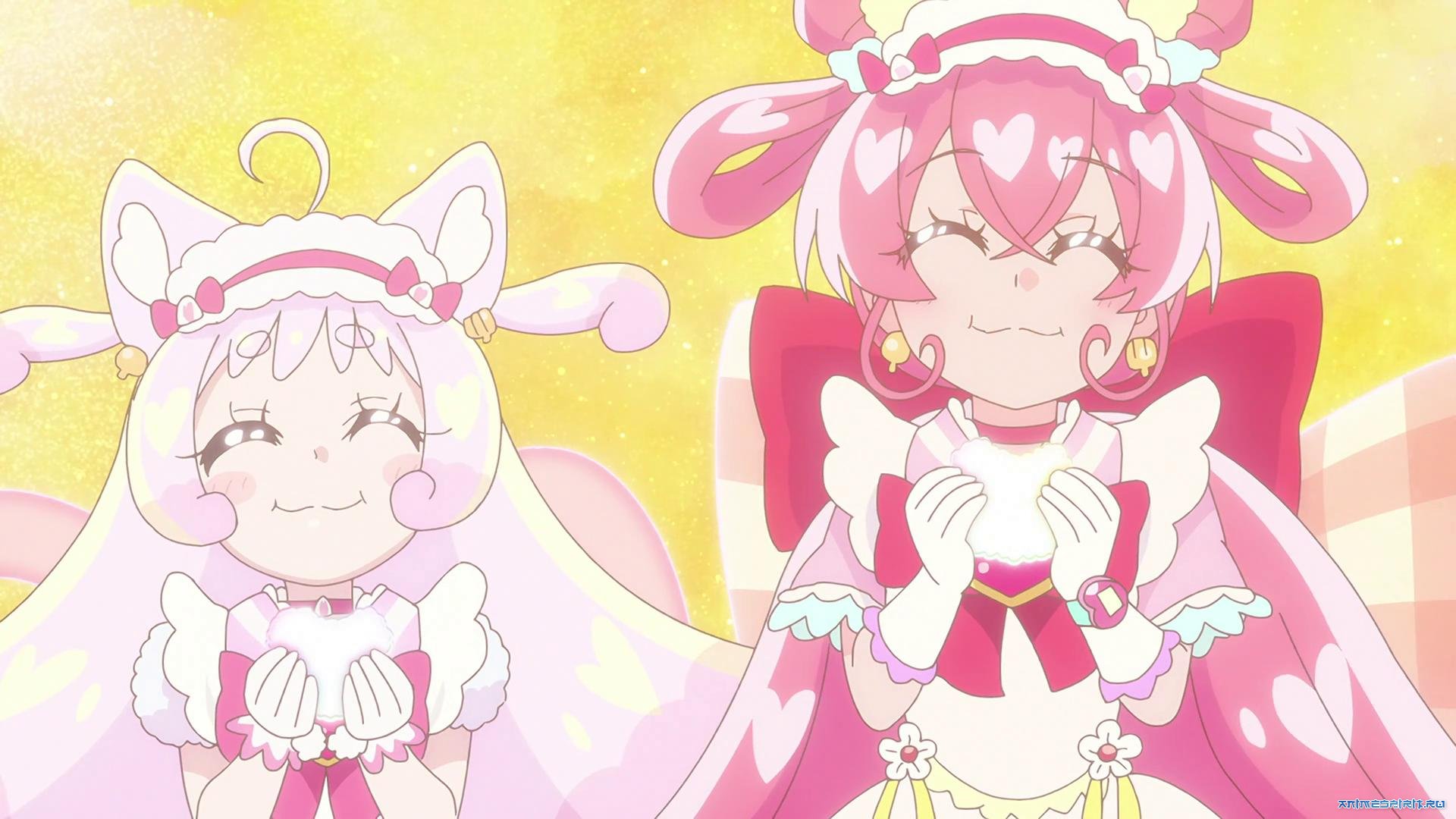 #01 Futari wa Precure - ТВ (49 эп.), первый сериал, 2004#02 Futari wa Precure Max Heart - ТВ (47 эп.), второй сериал, 2005#03 Eiga Futari wa Precure Max Heart - п/ф, дополнение, 2005#04 Eiga Futari wa Precure Max Heart 2: Yukizora no Tomodachi - п/ф, продолжение, 2005#05 Futari wa Precure Splash Star - ТВ (49 эп.), третий сериал, 2006#06 Futari wa Precure Splash Star Tick Tack Kiki Ippatsu! - к/ф, дополнение, 2006#07 Futari wa Precure Splash Star: Maji Doki 3D Theater - к/ф, дополнение, 2006#08 Yes! Precure 5 - ТВ (49 эп.), четвёртый сериал, 2007#09 Yes! Precure 5: Kagami no Kuni no Miracle Daibouken! - п/ф, дополнение, 2007#10 Yes! Precure 5 Go Go! - ТВ (48 эп.), пятый сериал, 2008#11 Eiga Yes! Precure 5 GoGo! Okashi no Kuni no Happy Birthday - п/ф, дополнение, 2008#12.1 Fresh Precure! - ТВ (50 эп.), шестой сериал, 2009 (версия с русскими субтитрами)#12.2 Fresh Precure! - ТВ (50 эп.), шестой сериал, 2009 (версия с русской озвучкой)#13 Eiga Precure All Stars DX: Minna Tomodachi - Kiseki no Zenin Daishuugou! - п/ф, spinoff (ответвление сюжета) предыдущих сезонов, 2009#14 Eiga Fresh Precure! Omocha no Kuni wa Himitsu ga Ippai!? - п/ф, дополнение к сериалу, 2009#15 Heartcatch Precure! - ТВ (49 эп.), седьмой сериал, 2010#16 Eiga Precure All Stars DX2: Kibou no Hikari - Rainbow Jewel o Mamore! - п/ф, spinoff (ответвление сюжета) предыдущих сезонов, 2010#17 Eiga Heartcatch Precure! Hana no Miyako de Fashion Show... Desuka!? - п/ф, дополнение к сериалу, 2010#18 Suite Precure - ТВ (48 эп.), восьмой сериал, 2011#19 Eiga Precure All Stars DX3: Mirai ni Todoke! Sekai o Tsunagu Niji-iro no Hana - п/ф, spinoff (ответвление сюжета) предыдущих сезонов, 2011#20 Precure All Stars DX the Dance Live: Miracle Dance Stage e Youkoso - к/ф, дополнение, 2011 #21 Precure Kara Minna e no Ouen Movie - ONA (1 эп.), дополнение, 2011 #22 Eiga Precure All Stars New Stage: Mirai no Tomodachi - п/ф, spinoff (ответвление сюжета) предыдущих сезонов, 2012#23 Eiga Suite Precure: Torimodose! Kokoro ga Tsunagu Kiseki no Melody - п/ф, дополнение, 2011#24 Smile Precure! - ТВ, девятый сериал, 2012#25 Eiga Smile Precure! Ehon no Naka wa Minna Chiguhagu! - п/ф, дополнение к сериалу, 2012#26 Eiga Precure All Stars New Stage 2: Kokoro no Tomodachi - п/ф, spinoff (ответвление сюжета) предыдущих сезонов, 2013#27 Dokidoki! Precure - ТВ (49 эп.), десятый сериал, 2013#28 Eiga Dokidoki! Precure: Mana Kekkon!!? Mirai ni Tsunagu Kibou no Dress - п/ф, spinoff (ответвление сюжета), 2013#29 Eiga Precure All Stars New Stage 3: Eien no Tomodachi - п/ф, дополнение, 2014#30 Happiness Charge Precure! - ТВ (49 эп.), одиннадцатый сериал, 2014#31 Eiga Happiness Charge Precure! Ningyou no Kuni no Ballerina - п/ф, дополнение, 2014#32 Eiga Precure All Stars: Haru no Carnival - п/ф, spinoff (ответвление сюжета) предыдущих сезонов, 2015#33.1 Go! Princess Precure - ТВ (50 эп.), двенадцатый сериал, 2015 (версия с русскими субтитрами)#33.2 Go! Princess Precure - ТВ (50 эп.), двенадцатый сериал, 2015 (версия с русской озвучкой)#34 Eiga Go! Princess Precure Go! Go!! Gouka 3-hontate!!! - п/ф, дополнение, 2015#35 Eiga Precure All Stars: Minna de Utau - Kiseki no Mahou! - п/ф, spinoff (ответвление сюжета) предыдущих сезонов, 2016#36.1 Mahoutsukai Precure! - ТВ (>13 эп.), тринадцатый сериал, 2016 (версия с русскими субтитрами)#36.2 Mahoutsukai Precure! - ТВ (>13 эп.), тринадцатый сериал, 2016 (версия с русской озвучкой)#37 Eiga Mahou Tsukai Precure! Kiseki no Henshin! Cure Mofurun! - п/ф, дополнение, 2016 #38 Cure Miracle to Mofurun no Mahou Lesson! - к/ф, дополнение, 2016#39 Eiga Precure Dream Stars! - п/ф, дополнение, 2017#40 Kirakira Precure A La Mode - ТВ (49 эп.), четырнадцатый сериал, 2017#41 Eiga Kirakira Precure A La Mode: Paris to! Omoide no Mille-Feuille! - п/ф, дополнение, 2017 #42 Eiga Precure Super Stars! - п/ф, дополнение, 2018#43 Hugtto! Precure - ТВ (49 эп.), пятнадцатый сериал, 2018#44 Eiga Hugtto! Precure x Futari wa Precure: All Stars Memories - п/ф, дополнение, 2018#45 Star Twinkle Precure - ТВ (49 эп.), шестнадцатый сериал, 2019#46 Eiga Precure Miracle Universe - п/ф, дополнение, 2019#47 Eiga Star Twinkle Precure: Hoshi no Uta ni Omoi o Komete - п/ф, дополнение, 2019#48 Healin Good Precure - ТВ, семнадцатый сериал, 2020#49 Eiga Precure Miracle Leap: Minna to no Fushigi na Ichinichi - п/ф, дополнение, 2020#50 Eiga Healin Good Precure: Yume no Machi de Kyun! Tto Go Go! Dai Henshin!! - п/ф, дополнение, 2021 #51 Tropical-Rouge! Precure - ТВ, восемнадцатый сериал, 2021 #52 Eiga Tropical-Rouge! Precure: Petit Tobikome! Collabo Dance Party! - к/ф, дополнение, 2021 #53 Eiga Tropical-Rouge! Precure: Yuki no Princess to Kiseki no Yubiwa! - п/ф, дополнение, 2021 #54 Delicious Party Precure - ТВ (45 эп.), девятнадцатый сериал, 2022#55 Eiga Delicious Party Precure: Yume Miru Oko-sama Lunch - п/ф, до