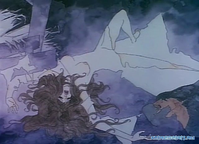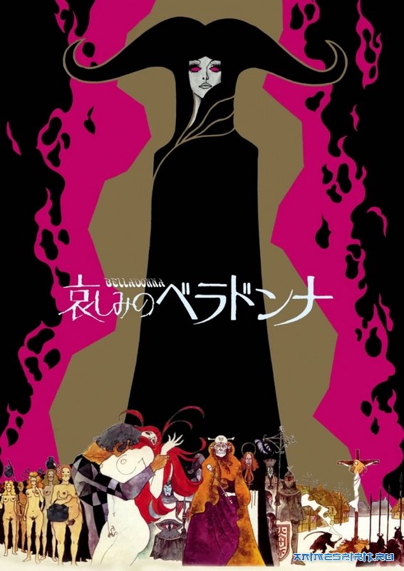 «Печальная Белладонна», в акварельно-модернистской вариации режиссёра Ямамото Эйити, автора оригинала Жюль Мишле и сценариста Фукады Ёсиюки, выстроена по типу фаустовской культуры. Очень активно авторы воздействуют на визуальное восприятие через различные психоделические образы и кислотные мазки; достаточно вспомнить вакхические оргии, где тело в буквальном смысле отринуло все человеческое и святое, отдавшись древним позывам живущих в них зверей и чудищ, а также различные стадии погружения Жанны в эксцентричные насланные Сатаной мороки и визуализированные трепетные экстазы. Даже наряд Жанны имеет царско-зеленый цвет, что укрывает ее тело, словно доспех, который непринужденно испаряется во время гона истинного короля города, владения которого она решило хитро прибрать, завоевав доверие людей — одно ей во всяком случае удалось, поскольку опосля жестокой расправы и предательства мужа, она облачается в крепкую броню своего темного покровителя, после чего пожинает плоды чумы и греха. В аниме много нескрываемо-прямых отсылок на Фрейдовские представления о мужском и женском начале; один только образ извергающегося Сатаны и расстеленных перед ним нагих тел стоит внимания. «Печальная Белладонна» — это яд наших сердец, и услада для глаз.