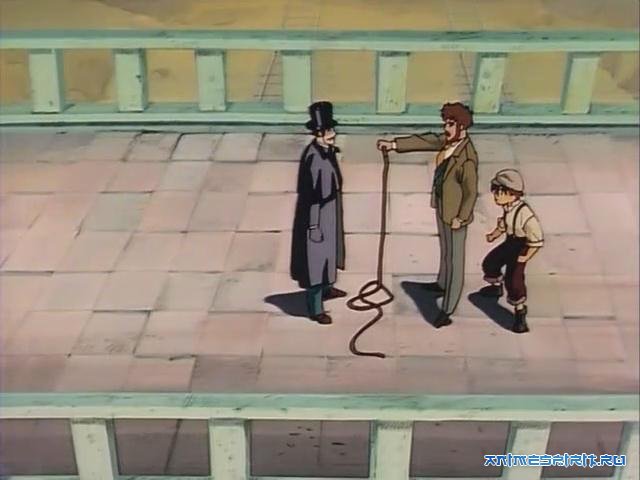 Эх, глупые бандиты, боящиеся подорваться на динамите, которого нету в окрестности километра (что прекрасно видно), и не предвидется ещё в течении где-то 20-ти минут аниме. Меч, свободно превращающийся в саблю и обратно несколько раз. Монархи Европы, пекущиеся о своих ничтожных голубокровных родственниках (хотя в реальности они прекрасно совершенно с ними воевали, и даже с далеко не самыми ничтожными в военном плане, вспомним знаменитую войну "Миколка против Вильки", т. е. Первую мировую). Ну и, конечно, жалкая шавка, могущая замочить каким-то образом роту солдат, но дохнущая с одного выстрела какой-то бабы (это вообще глупость). Кстати, если это аниме для маленьких детей, то зачем окровавленные трупы? В общем, залежалое сие произведение при всех его достоиствах (в т. ч. воспроиведении захватнических устремлений и лицемерных оправданий Германии начала XX века, такой неожиданной правде о прошлом парня и мужика, открываемой в финале и пр.) можно было спокойно не смотреть. =( |