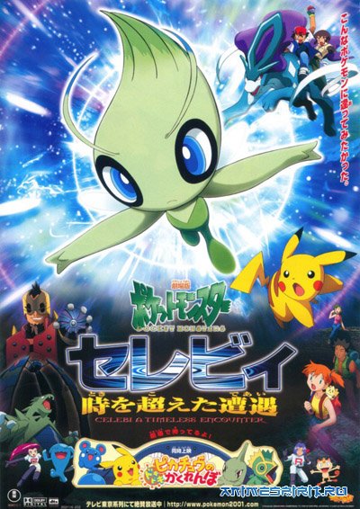 Описание: (Покемон Фильм: Селеби - голос леса) Сорок лет назад, мальчик по имени Юкинари спас божество леса, Покемона по имени Селеби, от рук браконьера. Селеби использовала свою способность путешествия во времени и телепортировал себя и Юкинари на 40 лет в будущее, во времена путешествия Эша и его друзей. Эш Кетчум, Брок и Мисти узнав об этом, собираются найти тех двоих, и отправить обратно в их измерение, пока зловещий лорд Вишес не напал и не захватил Селеби. Лорд Вишес обладает особым предметом – “темный шар”, способный превратить Селеби в темного Покемона, который способен захватить весь мир. Но, не один лорд охотится за столь редким Покемоном, команда «R» тоже надеется поймать его. Эшу и его друзьям предстоит разобраться с командой «R» и лордом Вишесом, чтобы спасти мир!