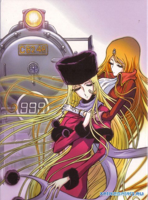 Описание: Практически всем известная классная анимэ. Здесь мы встретим таких героев как Королева Эмеральда и Капитан Харлок со своими помощниками и многих других известных персонажей… В мультфильме показаны приключения мальчика Тэцуро, который уничтожает механических людей, желая отомстить за смерть родителей. Механические люди овладели Вселенной и насильно правят ею. Тэцуро, мальчик из захолустного городка, попадает в центр ультрасовременного города, где находится планетарная станция «Мегаполис». От этой станции отходит «Экспресс-Галактика-999», на который пытается попасть Тэцуро. Он крадет билет и его пытается поймать полиция механических людей. Тэцуро неожиданно спасает таинственная Мейтел, с которой он будет вместе путешествовать в «Экспресс-Галактике-999». Мальчик хочет отомстить механическим людям, в частности графу Мекке, за смерть матери, убитой во время охоты на людей. Ему удаётся убить Графа Мекку, но Тэцуро принимает решение поехать на планету Андромеду, где находится фабрика по производству человекоподобных механических людей. По приезду на Адромеду их с Мейтел ожидают еще более захватывающие приключения... Анимация:#1 Галактический экспресс 999 ТВ (113 эп.), Адаптация манги, 1978#1.1 Галактический экспресс 999 ТВ (113 эп.), Адаптация манги, 1978 версия с русским озвучиванием #2 Галактический экспресс 999 п/ф (1 эп.), Адаптация манги, 1979#3 Галактический экспресс 999: Стеклянная Клэйр к/ф (1 эп.), Ремейк 3-го эп. оригинального сериала, 1980#4 Ginga Tetsudou 999: Kimi wa Senshi no You ni Ikira Special (1 эп.), Ремейк 12-13 эп. оригинального сериала, 1979#5 Галактический экспресс 999: Вечная странница Эмира Special (1 эп.), Ремейк 22-го эп. оригинального сериала, 1980#6 Ginga Tetsudo 999: Kimi wa Haha no You ni Aiseru Special (1 эп.), Ремейк 51-52 эп. оригинального сериала, 1980#7 Прощай, Галактический экспресс 999: Терминал Андромеды - п/ф, продолжение оригинального сериала, 1981#8 Галактический экспресс 999: Вечная фантазия к/ф (1 эп.), Продолжение, 1998#9 Kasei Ryodan Dnasights Four-Nine к/ф(1 эп.), Предыстория оригинального сериала,1998#10 Галактические Железные Дороги ТВ (26 эп.), Продолжение оригинального сериала, 2003#11 Галактические Железные Дороги OVA (4 эп.), Продолжение, 2007#12 Галактические Железные Дороги ТВ (24 эп.), Продолжение, 2006#13 Ginga Tetsudou 999: Diamond Ring no Kanata e к/ф (1 эп.), Дополнение, 2009