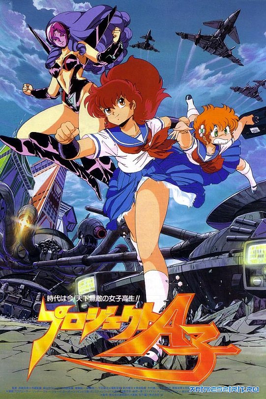 Описание: Эйко Магами - простая японская супердевочка. Каждое утро, с трудом проснувшись от звона будильника, она на сумасшедшей скорости несётся в школу, держа за руку свою золотовласую подружку Сико Котобуки. Кроме будильника, у Эйко есть ещё один враг - королева класса, дочь крупного магната Бико Дайтокудзи, испытывающая нежные романтические чувства к глуповатой красавице Сико. В своём боевом суперкостюме Бико в состоянии померяться силами с Эйко, и девушки азартно метелят друг дружку, разнося вдребезги всю округу. Поединок сверхгероинь прерывает вторжение инопланетян, принимающих Сико за свою утерянную принцессу и похищающих её к себе на корабль. Чтобы вызволить подругу, Эйко и Бико вынуждены на время объединиться... #1 Проект А-ко - Фильм, оригинальный фильм, 1986#2 Проект А-ко II: Интрига финансовой группы Дайтокудзи - OVA (1 эп.), продолжение, 1987#3 Проект А-ко III: Рапсодия Золушки - OVA (1 эп.), продолжение, 1988#4 Проект А-ко: Финал - OVA (1 эп.), продолжение, 1989#5 Проект А-ко: Противостояние - OVA (2 эп.), продолжение, 1990