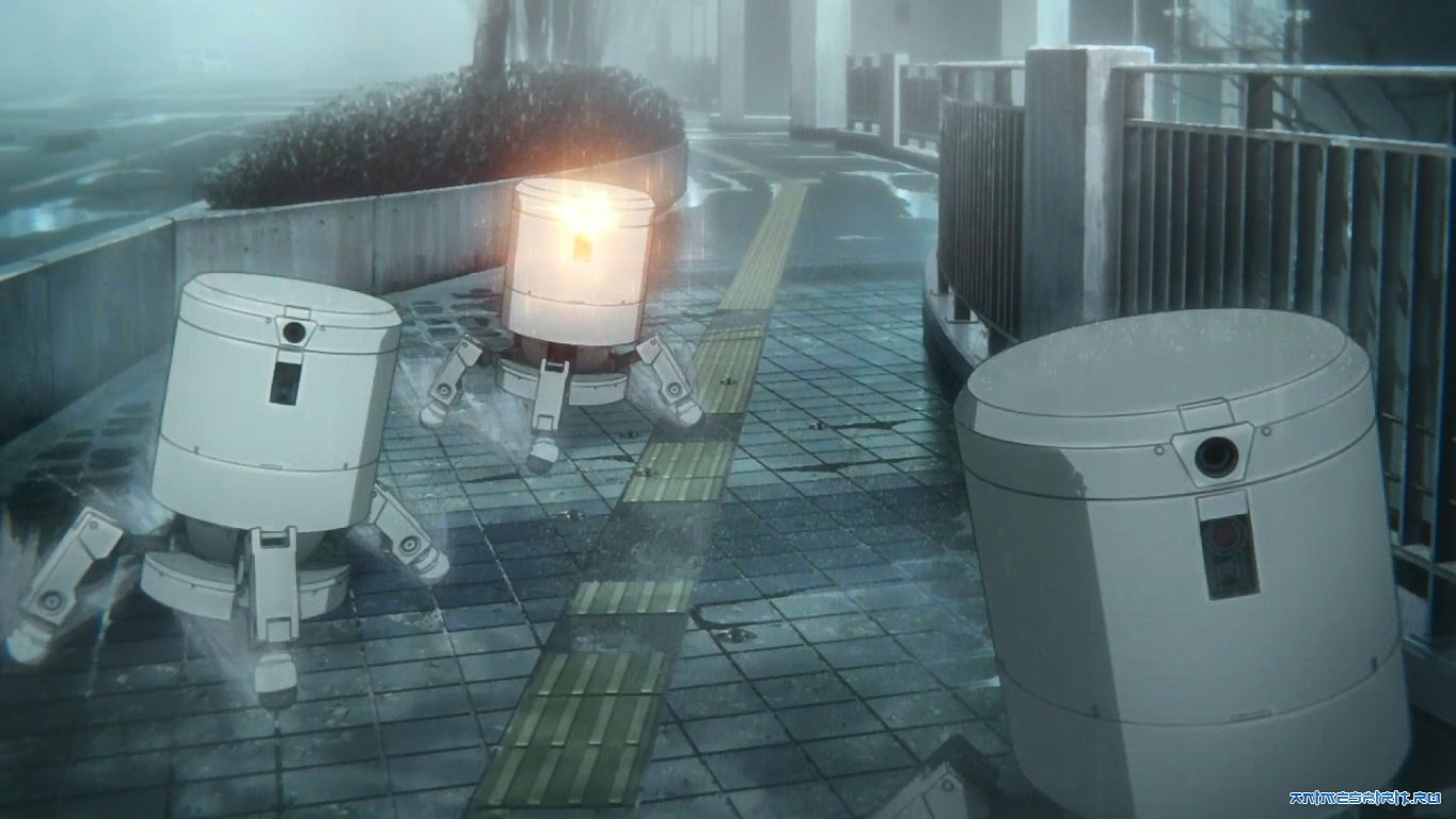 По ощущением - полнометражная драма. По факту, она самая.Камерое действие на 100 минут, сюжет на пол страницы, два с половиной персонажа за всю картину. Ощущений - море. Вещь простая и ципляет сразуже, кокретно и до конца. Вобще идея крайне простая и стара как мир, людей нет - роботы остались. Брошеный во время войны город в котором одинокий андроид продолжает усердно исполнять свои обязаности... давно утратившие всякий смысл. Зазывает посетителей которых нет, каректирует расписание сеансов которые непроводит, и продолжает пытаться дозвониться до тех подержки которой давно уже несуществует. Тут нечего придумывать не надо, это само по себе на столько мощно, что наш андроид сразу же завоевывает сопереживание. И тут появляется, единственый кто впринцепи мог появиться в этом городе - морадер. Единственое допущение этого аниме - мородер оказалься хорошим парнем. Наверное в душе тоже одичал. Во всем остальном персонаж просто невероятно убедительный. Именно он превращает все происходящие в почти осезаемую реальность. Илюзорный мир застывший во времени встретилься с реализмом который просто пряталься от дождя.  |