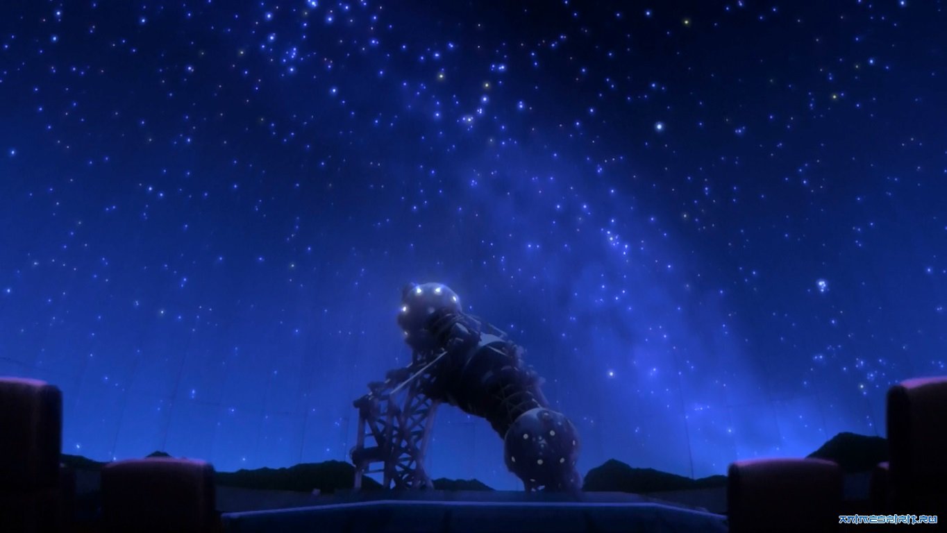 Будет ласковый дождь - рассказ написанный Брэдбери Рэем, повествующий о умной доме, уцелевшем после ядерной войны. В программу дома входило, обслуживать семью живших там, делать их жизнь комфортной. Каждый день, питаясь от солнечных батарей, дом выполнял инструкции вложенные в него: приготовить еду, включить телевизор, разложить стол для покера и так далее. Так продолжалось до тех пор, пока дом не сгорел. Хоть в рассказе действующим лицом было не одушевленное лицо, все равно было искренне жаль изобретение человека, созданное для его же комфорта. Дом продолжал выполнять программу заложенную в мирное время, он не понимал, что семьи больше нет - от них остались лишь тени на асфальте, а все в радиусе 1000 миль, радиоактивная помойка. Продолжал выполнять программу заложенную в мирное время, программа которая как эхо мирных лучших времен, раздавалась среди радиоактивной помойки. Именно с этим рассказом, у меня возникла ассоциация с этим шедевром. Также и Юмэни не понимала, вернее не хотела понимать, что все вокруг разрушенно, что в планетарий никто не придет. Девушка-андройд выполняющая ежедневную программу,как эхо раздается среди разрушенного войной города. Илюзорный маленький мир , который она создавала в планетарии, тронул главного героя и меня, унося в мир звезд. Невольно задал себе вопрос: а когда я смотрел на звездное небо? Мне искринне жаль её,хоть она и не живая, но она гораздо человечней тех, кто поворачивал ключи и нажимал на кнопки в ядерных шахтах. Подобные произведения заставляют задуматься, какое наследие оставит после себя человек? Полет к дальним звездам, исполняя мечту Юмэми и тысяч мечтателей, с романтическим взглядом глядящих в небо или....радиоактивный пепел.... К сожалению, второе более вероятно.