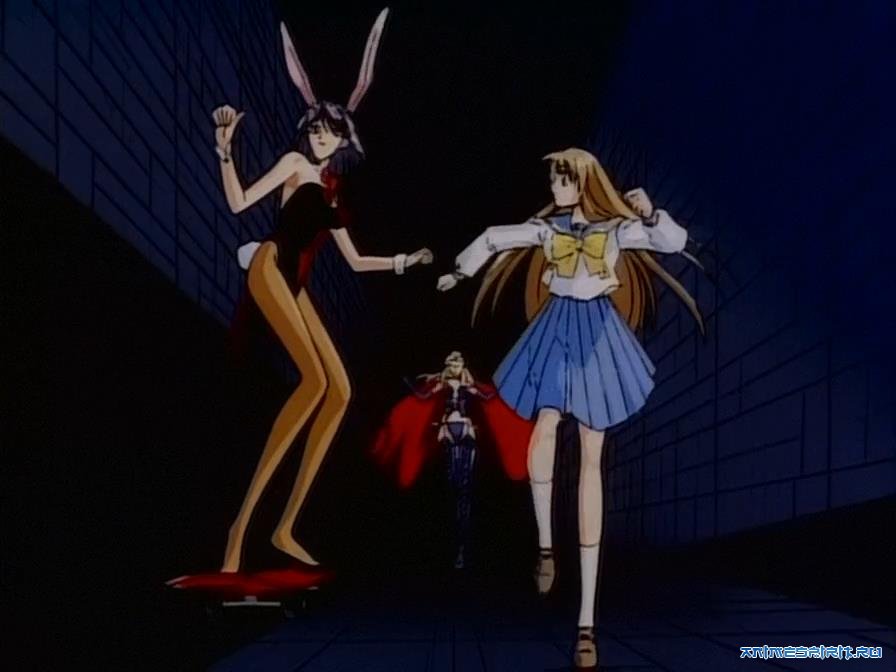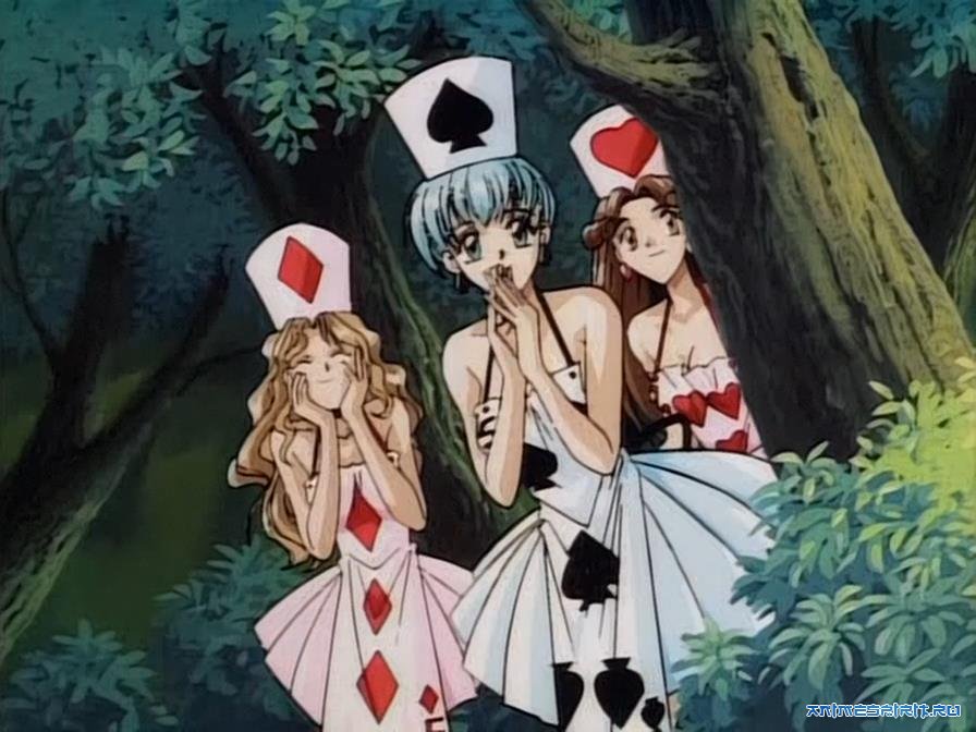 Описание: Миюки – классическая сёдзе-школьница в классическом сейлор-фуку и в классической же CLAMP’овской манере (тонкие ноги, острый подбородок, брови, светящиеся сквозь челку). Она торопится в школу, но по дороге девушка на скейтборде в костюме playboy’евского кролика увлекает ее в Страну Чудес. И населена эта страна чудесными девушками в чудесных нарядах (кто – в купальниках, кто – в вечернем, кто – в коже и с хлыстом), и девушки эти чудесят вовсю!!! Особенно с новенькими, молоденькими и хорошенькими. Нужны детали? Смотрите OAV, а то тут дети могут читать.