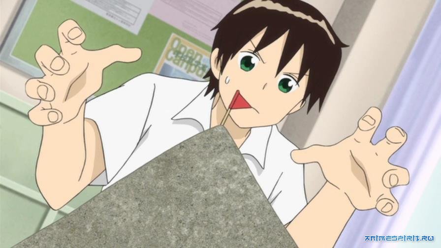 Описание: Сюжет повествует о девочке по имени Ёкой, которая сидит за соседней партой с парнем известным лишь под именем Сэки-кун. Во время уроков парень обычно не обращает внимания на учителей, но устраивает всякие прикольные штуки, вроде миниатюрного поля для гольфа с неровностью парты в качестве лунки или драматической затяжной войны бумажных фигурок. В результате Ёкой тоже совершенно не может сосредоточиться на учёбе и только и делает, что наблюдает за занятным хобби Сэки-куна.
