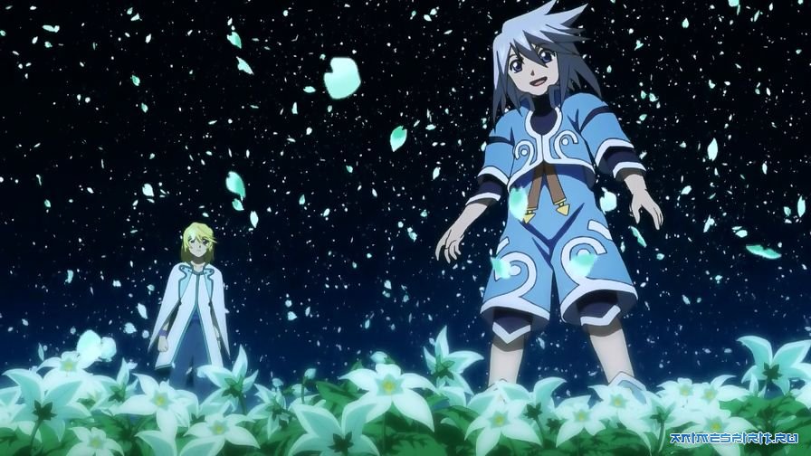 Описание: Коллет удалось спасти, но что ждёт наших героев и этот мир в будущем? Какие откровения и испытания уготовила им судьба? Заключительная часть аниме-адаптации игры "Tales of Symphonia" от NAMCO.
