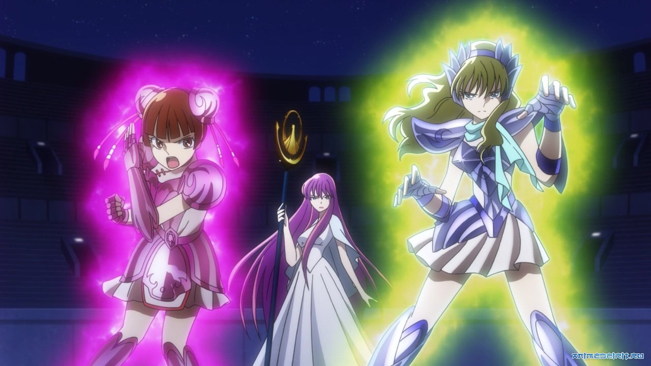 Описание: Афина, богиня справедливости и мудрости, приходит на Землю в облике Саори Кидо, чтобы сразить злых божеств вместе со своей армией Святых. И на этот раз её рыцарями станут девушки, которые с помощью хитрости, силы и сострадания будут сражаться за свои миры и противостоять самой судьбе.