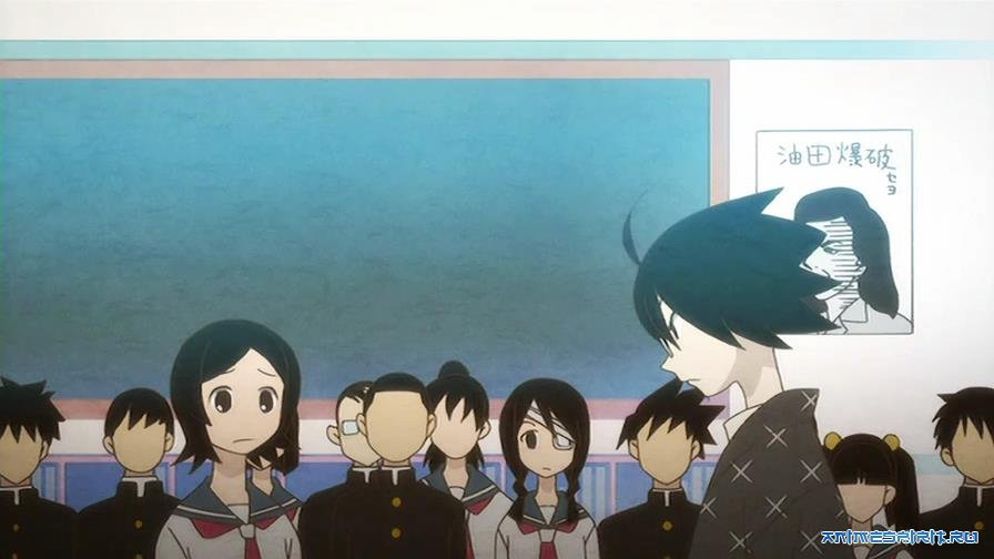 Описание: Чем отличается оптимист от пессимиста? Пессимист в кимоно и хакама, решив повеситься на цветущей сакуре, думал, что хуже быть уже не может. Вот только пообщавшись пару минут с одной очень оптимистичной школьницей, понял, что был неправ - самое жуткое в его жизни только начинается. А значит, вешаться рано, надо взойти на Голгофу до конца. И пошел несчастный учитель по имени Нодзому Итосики обратно в школу, знакомиться с новым классом, в котором, конечно же, оказалась та самая девушка...