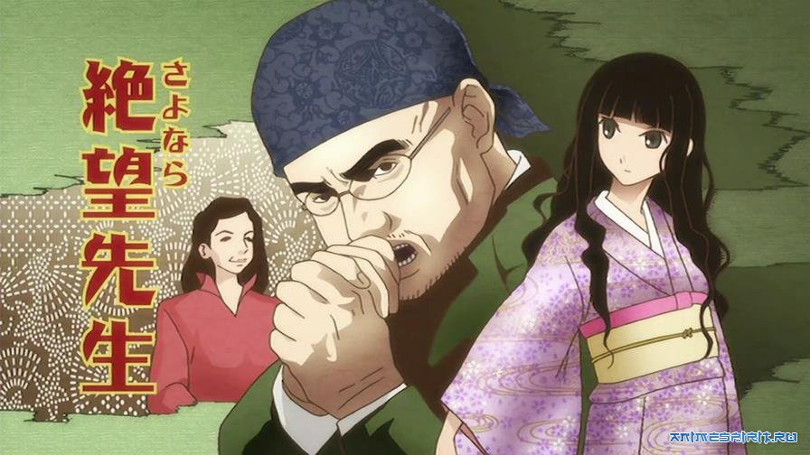 Так и потекли трудовые будни Итосики-сэнсэя, регулярно вспоминающего любимую фразу: «Я в отчаянии!». Несовершенство мира, неустроенность личной жизни, отборные кадры из атласа подростковой психопатологии, наводнившие его класс – поводов более чем достаточно. Приключения, радости и горести «унылого учителя» и обожающего его сплоченного актива 11-го «Е» в итоге составили один из самых интересных учебников японской жизни, философии и культуры, написанный в духе постмодернистской комедии абсурда – фирменного жанра студии Shaft и режиссера Симбо Акиюки!