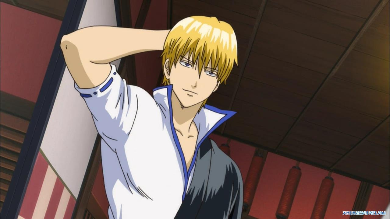 Описание: Возвращается как-то Гин-сан домой через полгода... слегка уставший от отдыха. Поднимается на второй этаж, входит в знакомую дверь, а там – Синпати, Кагура и он сам! Только «он сам» - плечистый красавчик-блондин по имени Кинтоки Саката, от которого обитатели «Закусочной Отосэ» просто без ума. Разобравшись в ситуации, бедный Гин понял, что вокруг не похмельный угар, а самый настоящий заговор – Злые Силы Рынка заменили его на идеального героя, андроида Кина, отредактировав при этом людскую память, мангу, аниме и даже видеоигры! Теперь для района Кабуки и всего Эдо золотоволосый Кинтоки – старый знакомый и свой в доску парень, а он, Гин – приблудная пьянь, несущая какую-то чушь.
