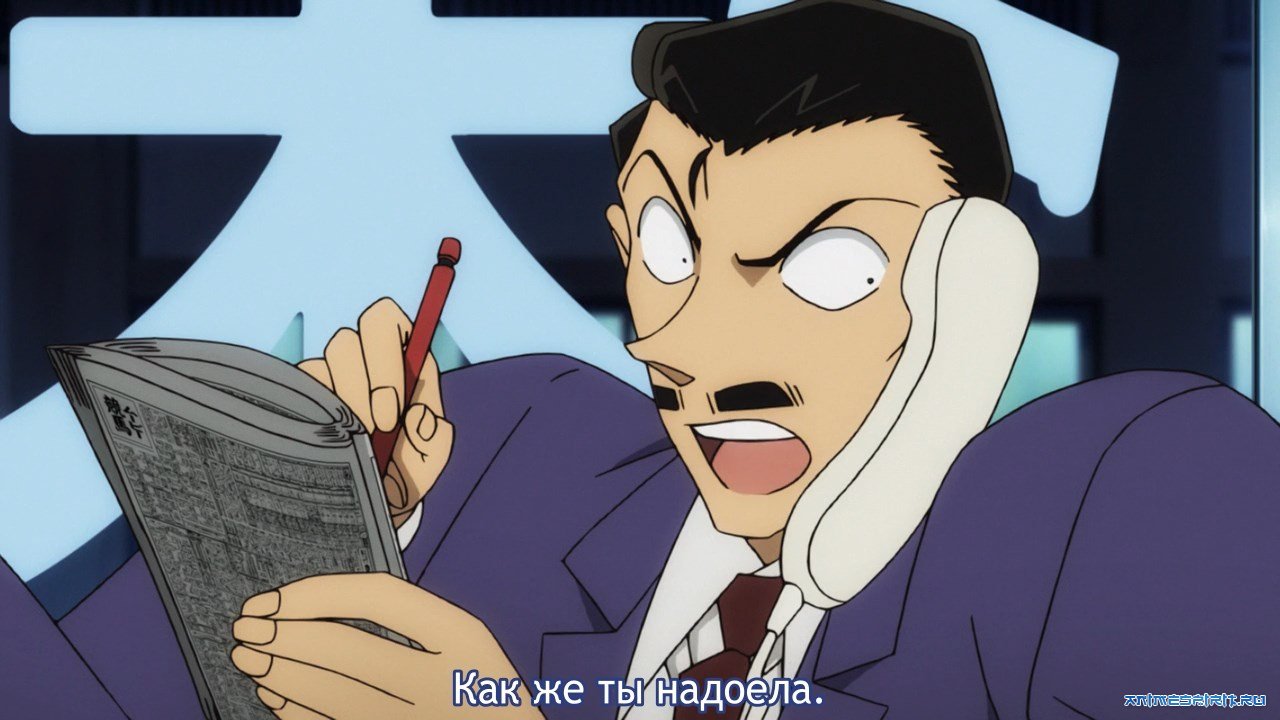 Анимация:#01.1 Детектив Конан (часть 1)[ТВ] - ТВ (>975 эп.), адаптация манги, 1996 - версия с русскими субтитрами #01.2 Детектив Конан (часть 2)[ТВ] - ТВ (>975 эп.), адаптация манги, 1996 - версия с русскими субтитрами #01.3 Детектив Конан (часть 1)[ТВ] - ТВ (>975 эп.), адаптация манги, 1996 - версия с русским озвучиванием #01.4 Детектив Конан (часть 2)[ТВ] - ТВ (>975 эп.), адаптация манги, 1996 - версия с русским озвучиванием #01.5 Детектив Конан (часть 1)[ТВ] - ТВ (>975 эп.), адаптация манги, 1996 - версия с русским озвучиванием Persona99 #01.6 Детектив Конан (часть 2)[ТВ] - ТВ (>975 эп.), адаптация манги, 1996 - версия с русским озвучиванием Persona99 #02 Детектив Конан (фильм 01) - п/ф, дополнение, 1997 - смотреть после 54 серии #03 Детектив Конан (фильм 02) - п/ф, дополнение, 1998 - смотреть после 97 серии #04 Детектив Конан (фильм 03) - п/ф, дополнение, 1999 - смотреть после 140 серии #05 Детектив Конан (фильм 04) - п/ф, дополнение, 2000 - смотреть после 186 серии #06 Детектив Конан OVA-1 - OAV (1 эп.), дополнение, 2000 - смотреть после 173 серии #07 Детектив Конан (фильм 05) - п/ф, дополнение, 2001 - смотреть после 231 серии #08 Детектив Конан (фильм 06) - п/ф, дополнение, 2002 - смотреть после 275 серии #09 Детектив Конан OVA-2 - OAV (1 эп.), дополнение, 2002 - смотреть после 262 серии #10 Детектив Конан (фильм 07) - п/ф, дополнение, 2003 - смотреть после 315 серии #11 Детектив Конан OVA-3 - OAV (1 эп.), дополнение, 2003 - смотреть после 303 серии #12 Детектив Конан (фильм 08) - п/ф, дополнение, 2004 - смотреть после 356 серии #13 Детектив Конан OVA-4 - OAV (1 эп.), дополнение, 2004 - смотреть после 344 серии #14 Детектив Конан (фильм 09) - п/ф, дополнение, 2005 - смотреть после 396 серии #15 Детектив Конан OVA-5 - OAV (1 эп.), дополнение, 2005 - смотреть после 383 серии #16 Meitantei Conan: Conan vs Kid - Shark & Jewel - к/ф, дополнение, 2005 - 3D IMAX фильм, показанный только в музее искусств Сантори в Осаке. #17 Детектив Конан OVA-6 - OAV (1 эп.), дополнение, 2006 - смотреть после 424 серии #18 Детектив Конан (фильм 10) - п/ф, дополнение, 2006 - смотреть после 434 серии #19 Meitantei Conan: Conan vs Kid - Shikkoku no Sniper - к/ф, дополнение, 2006 - 3D IMAX фильм, показанный только в музее искусств Сантори в Осаке. #20 Детектив Конан OVA-7 - OAV (1 эп.), дополнение, 2007 - смотреть после 459 серии #21 Детектив Конан (фильм 11) - п/ф, дополнение, 2007 - смотреть после 470 серии #22 Meitantei Conan Magic File - OAV (1 эп.), дополнение, 2007 - рекап, состоящий из 132-134, 196, 266-268, 291-293 эпизодов #23 Детектив Конан OVA-8 - OAV (1 эп.), дополнение, 2008 - смотреть после 490 серии #24 Детектив Конан (фильм 12) - п/ф, дополнение, 2008 - смотреть после 504 серии #25 Meitantei Conan Magic File 2 - OAV (1 эп.), дополнение, 2008 - смотреть после 504 серии #26 Детектив Конан (фильм 13) - п/ф, дополнение, 2009 - смотреть после 531 серии #27 Meitantei Conan Magic File 3 - OAV (1 эп.), дополнение, 2009 - смотреть после 531 серии #28 Детектив Конан OVA-9 - OAV (1 эп.), дополнение, 2009 - смотреть после 520 серии #29 Детектив Конан (фильм 14) - п/ф, дополнение, 2010 - смотреть после 570 серии #30 Meitantei Conan Magic File 4 - OAV (1 эп.), дополнение, 2010 - смотреть после 570 серии #31 Детектив Конан OVA-10 - OAV (1 эп.), дополнение, 2010 - смотреть после 561 серии #32 Детектив Конан (фильм 15) - п/ф, дополнение, 2011 - смотреть после 613 серии #33 Detective Conan Magic File 2011 - OVA (1 эп.), дополнение, 2011 - смотреть после 613 серии #34 Детектив Конан OVA-11 - OAV (1 эп.), дополнение, 2011 - смотреть после 601 серии #35 Meitantei Conan vs. Wooo - ONA (2 эп.), дополнение, 2011 - смотреть после 615 и 623 серии #36 Детектив Конан (фильм 16) - п/ф, дополнение, 2012 - смотреть после 651 серии #37 Meitantei Conan Bonus File: Fantasista no Hana - OVA (1 эп.), дополнение, 2012 - смотреть после 16 фильма #38 Детектив Конан OVA-12 - OVA (1 эп.), дополнение, 2012 - смотреть после 641 серии #39 Детектив Кона