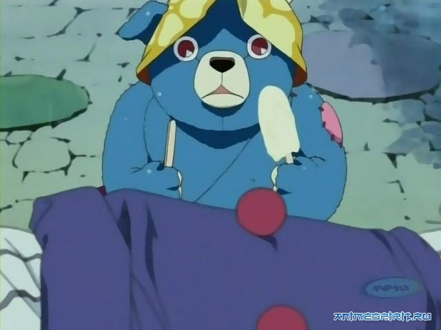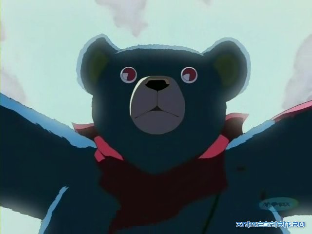 Описание: Большой шипованный медведь, который тащится с барабаном и барабанной палочкой в руке ... Это мистер Супер Медведь! Во время игры на барабане и без выражения на лице мистер Медведь спас Маа-кун от грабителя банка. Однажды Маа-кун нашел «мистера Супер Медведя» и клоуна, развлекающего детей, выступая за них. Кто этот «мистер Супер Медведь» ...?