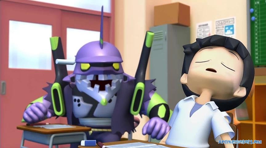 Описание: "Евангелион в Школе" это пародия на Евангелион Нового Поколения, в которой все персонажи оригинального сериала становятся учениками средней школы в Токио-3. Сериал представляет три "Сестры Рей": первая Рей младше, чем остальные участники, вторая похожа на ту Рей которую зрители видели в оригинальном сериале и образ третей Рей базируется на активной и неловкой "Альтернативной Рей" из снов в последней серии оригинального сериала. Более того, EVA 01 робот также посещает эту школу, но выглядит как небольшой робот размером с рост человека. Даже Jet Alone представлен одним из персонажей сериала.