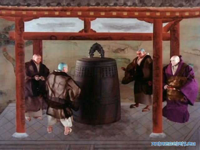 Описание: Легенда 18 века, широко известна в Японии своими постановками в театре Кабуки. Согласно легенде в одном храме был красивый монах по имени Anchin, к которому воспылала страстью юная девушка по имени Kiyo-hime. Так как он был монахом, то не мог ответить на ее страсть. Но Kiyo-hime продолжала преследовать его. В конце-концов ее страстная любовь превратилась в глубокую ненависть и девушка превратилась в огнедышащую змею. Испуганный монах бежал к Храму Додзе ( "додзе" - так называется место, где постигают Путь) и скрылся под огромным священным колоколом, который настоятель храма опустил ради него. Змея обвила колокол, огненным дыханием раскалила его и монах сгорел до тла.
