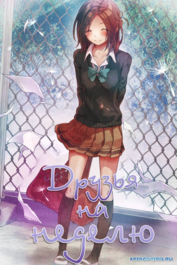 Описание: 16-летний Юки Хасэ очень хотел познакомиться с Каори Фудзимией, которая в школе явно сторонилась остальных ребят. Все попытки разговорить симпатичную одноклассницу наталкивались на ответ, что она, мол, не может иметь друзей. Но Юки не отставал, и, в конце концов, узнал грустную истину: после несчастного случая Каори страдает амнезией – каждый понедельник она забывает всех, с кем познакомилась неделей раньше. Чтобы не страдать от взаимных обид, девушка замкнулась в себе и не желает сближаться с людьми. Но Хасэ решил иначе – если нельзя по-другому, они с Фудзимией станут друзьями на неделю! Вот так и потекла жизнь новых друзей – Каори стала вести дневник, записывая туда события и впечатления, чтобы раз за разом, неделю за неделей, сохранять хотя бы крупицы памяти о единственном друге. Юки делал все, чтобы подруга получала удовольствие от жизни и поскорее забыла прошлое. Вот только Сёго, лучшего друга, в секрет Каори он посвятил, похоже, зря – возник классический треугольник. Правда, вскоре он перерос в многоугольник, а дальше схема отношений вообще вышла в третье измерение. Но ведь главное в лечении – пробудить у пациентки стойкие положительные эмоции, а здесь чем больше народу, тем веселее! Заболевание Каори называется диссоциированной амнезией. Мать девочки абсолютно права – амнезия такого рода может быть только психогенной, т. е. связанной с психической травмой.