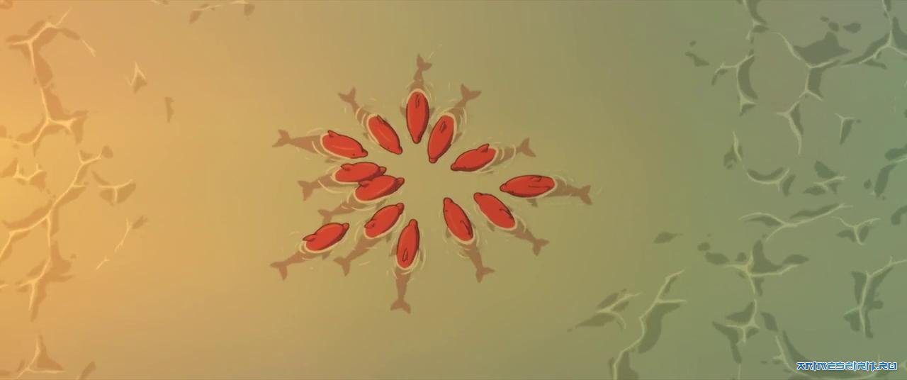 Описание: В сердце океана сокрыт волшебный мир — обитель существ, управляющих течениями и сменой времён года. У них есть традиция: как только обитатель того мира достигает 16-летия, он должен на 7 дней отправиться в мир людей. Девушка Юна принимает облик красного дельфина и плывет посмотреть на человечество, но попадает в рыболовные сети. Ценой собственной жизни её спасает местный парень, и тогда Юна, чувствуя вину и ответственность, обращает его душу в маленькую рыбку и берет её с собой в волшебный мир.