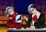 Рисунок от пользователя Bis7771. Соответствие теме (насколько точно художнику удалось передать заданную тематику) - 10 баллов; Сказочность персонажей и праздничная тематика однозначно присутствуют. 2. Композиция (пропорции и логические ошибки) - 8 баллов; Умолчу о том, что упоминалось уже ранее. Добавлю, что мне не очень естественной показалась форма головы демоницы (резко очерчена, почти отсутствуют тени...). Зато он очень даже правдоподобен. 3. Стиль исполнения (стиль художника, а не направление живописи) - 9 баллов. 4. Восприятие (что понравилось, чего не хватило) 9баллов. Порадовал фон. Тут и лёгкая мрачность замка, и звёздное небо, что, несомненно, создаёт атмосферу таинственности...Понравился переход цветов на заднем плане, будто они сидят у камина. Уютно. Что не очень? Да...Мышку жалко  Так как демоница придерживает её за крылья, создалось впечатление, что вампир (или кто он есть?) черной краской собирается бедолагу намазывать...Будто мышь не нарисована и смотрит обреченными красными глазками:"Спаси-и-ите!" Или, может, он её приклеивает к яйцу? (А чего, демоны и вампиры - жестокие существа). Хотя, может, это просто объемная аппликация и я зря сгущаю краски  )) Да, порадовали детали: серёжка в виде мышки, стеклянный бокал, тени. А вот точечки на щеках демоницы и её нос как-то не очень...Интересный сюжет, позы персонажей. В общем, неоднозначное впечатление... Автору творческих успехов  !