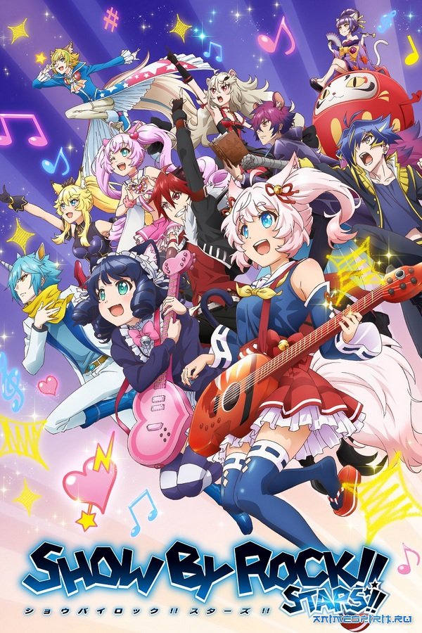 #1 Show by Rock!! - ТВ (12 эп.), адаптация игры, 2015#2 Show by Rock!! Short!! - ТВ (12 эп.), адаптация игры, 2016#3 Show by Rock!!# - ТВ (>12 эп.), продолжение, 2016#4 Show by Rock!! Mashumairesh!! - ТВ, адаптация игры, 2020#5 Show by Rock!! Stars!! - ТВ (12 эп.), продолжение, 2021