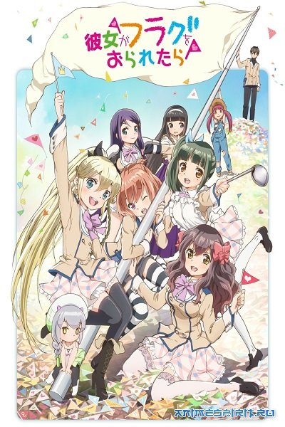 Описание: Сота Хататэ после трагедии на круизном лайнере остался круглым сиротой. Учеником он был прилежным и без труда получил стипендию с проживанием в старшей школе Хатагая. Правда, поселили парня в старом доме, знавшем лучшие времена, но в академии хватает сердобольных девушек, которые загадочного героя пожалеют, обогреют и сообща превратят развалину в роскошный дворец. А раз есть жилплощадь – пора заводить гарем, благо Хататэ владеет чудным даром – он может, как в игре, видеть над головами новых знакомых флаги, описывающие их роль и судьбу. И не только видеть, но и ломать ненужные флаги силой своей воли! Вот так вокруг главного героя в гостевом доме постепенно собрался дружный коллектив: «свой парень» принцесса Нанами, романтическая подруга Аканэ, «старшая сестрица» Кикуно, местный трансвестит Мэгуму, спортсменка Рин и андроид Рури впридачу! Конечно же, все это не случайно, ибо волшебница Сакура, наградившая Соту странным даром, желает, чтобы он набрал команду для какого-то квеста, а не менее могущественные силы хотят этому помешать. Биться на земле и лезть в мрачные подземелья все-таки придется – иначе не разгадать тайны и не избежать печальной участи. Бедный, бедный Сота – а что, если его собственный флаг сломается?! Данное аниме можно обсудить ТУТ Дословно название сериала переводится как «Если ее флаг сломается». Главный герой не зря видит флаги – ведь его фамилия Хататэ значит «поднимать флаг», а учится Сота в академии Хатагая, то есть «долина флагов». Общежитие, где живут герои сериала, называется Quest Dorm – это можно понять и как «приют гостей», и как «приют приключений».