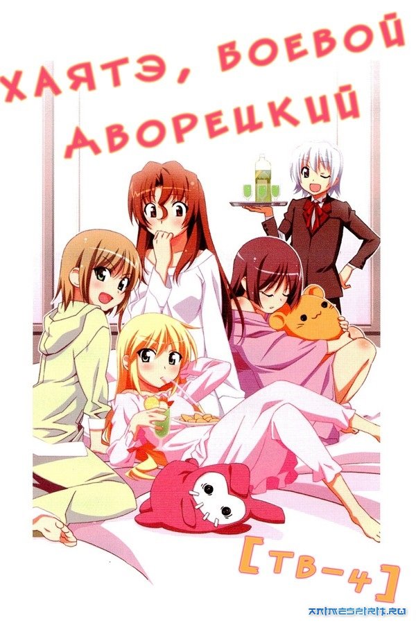 Описание: В жизни боевого дворецкого Хаятэ очередные перемены – из-за семейных разногласий хозяйка, а значит, и окружающий ее дружный коллектив, переехали из фамильного гнезда в заброшенный Фиалковый особняк. Чтобы наладить жизнь в остатках былой роскоши, было принято решение превратить новое место жительства в доходный дом. И кто, по-вашему, поселился в пустующих комнатах? Конечно же, все признанные милашки сериала – от великолепной Хинагику и загадочной Афины до патентованной «простой японской школьницы» Аюму. А кто не поселился – тот регулярно заглядывает на огонек! В общем, хлопот слугам семьи Сандзэнин только прибавилось, но если Мария хотя бы школу окончила, то Хаятэ еще учиться надо, аттестат зрелости никто не отменял. Хозяйка же по понятным причинам впала в депрессию, игнорирует учебу, и даже любимые увлечения ее не радуют. Хорошо еще, что жильцы частично взяли реабилитацию Наги на себя – а остальное снова на бедном дворецком, включая помощь в рисовании додзинси, поиск тайных комнат и перевозку белых тигров. А попутно, дорогой Хаятэ, будь готов скрашивать жизнь десятку девушек, половина из которых питает к тебе весьма серьезные чувства! #1.1 Хаятэ, боевой дворецкий [ТВ-1] (Версия с русскими субтитрами) - ТВ (52 эп.), адаптация манги, 2007 #1.2 Хаятэ, боевой дворецкий [ТВ-1] (Версия с русским озвучиванием) - ТВ (52 эп.), адаптация манги, 2007 #2 Хаятэ, боевой дворецкий OVA - OVA (1 эп.), продолжение, 2009 #3 Хаятэ, боевой дворецкий [ТВ-2] - ТВ (25 эп.), продолжение, 2009 (Данная новость находится на модерации) #4 Хаятэ, боевой дворецкий (фильм) - п/ф, продолжение, 2011 #5 Хаятэ, боевой дворецкий [ТВ-3] - ТВ (12 эп.), адаптация манги, 2012 #6 Хаятэ, боевой дворецкий [ТВ-4] - ТВ (12 эп.), продолжение, 2013