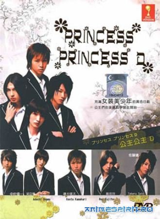 Описание: Старшая школа Фудзимори - закрытое учебное заведение для мальчиков со своей историей и традициями. Одной из таких традиций является система «Принцесс». Трех самых симпатичных первокурсников наделяют рядом привилегий, а взамен они должны делать жизнь остальных учеников ярче: выступать на фестивалях, ходить в платьях и подбадривать окружающих. Такими «Принцессами» являются Коно Тору, Сиходани Юдзиро и Ютака Микото? и это их устраивает. Конечно, им не очень нравится носить платья с рюшками и туфли на каблуках, но ради привилегий можно потерпеть… Размеренная жизнь троих друзей меняется, когда в школу приходит новый ученик Ханадзоно Отоя. Он тоже красив и талантлив, но ненавидит «Принцесс» и жаждет власти… Поэтому Отоя вместе со своими сторонниками становятся «Темными Принцессами». Их популярность растет, почти вся школа восхищается только ними, вот уже практически вся власть в руках «Темных Принцесс». Только зачем на самом деле все это нужно Отоя, и что за секрет его связывает с президентом студенческого совета Арисада Сюей? Камакари Кэнта / Kamakari Kenta — Ютака Микото [2006] Фудзита Рэй / Fujita Rei — Сиходани Юдзиро [2006] Сато Такэру / Sato Takeru — Коно Тору [2006] Сайто Такуми / Saito Takumi — Арисада Сюя [2006] Адати Осаму / Adachi Osamu — Сакамото Акира [2006] Накамура Юйти / Nakamura Yuichi — Ханадзоно Отоя [2006] Сибуя Кэнто / Shibuya Kento — Минамото Куро [2006] Исигуро Хидэо / Ishiguro Hideo — Харука [2006] Минами Сёта / Minami Shota — Косино Масаюки [2006] Сато Харухико / Sato Haruhiko — Харуэ Ватару [2006] Ёсихара Хироси / Yoshihara Hiroshi — Тадасу Такахиро [2006] Ямамото Кохэй / Yamamoto Kohei — Надасё Каору [2006]