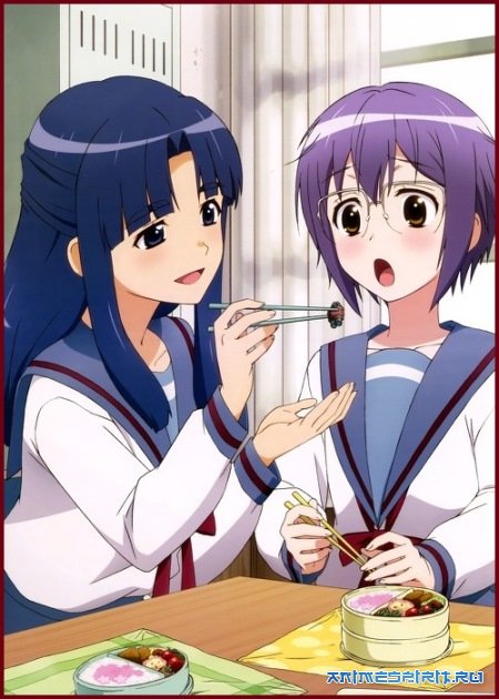 Описание: Что если из мироздания исчезнет юная богиня, а на ее месте возникнет шумная и необычная школьница по имени Харухи Судзумия? Как вы уже догадались, миру тогда не понадобятся эсперы, пришельцы и путешественники по времени, все смогут жить спокойно и в разной мере счастливо. В этом Отражении Юки Нагато – не бесстрастный эффектор Единой Мыслящей Сущности, а симпатичная и застенчивая «литературная девушка», если и готовая с кем-то схватиться, то в состязании с некоей Микурочкой за сердце их общего знакомого Кёна! Да, верные поклонники будут рады увидеть любимых героев в любом мире, любом виде и любом разрезе, тем более, что кроме «великолепной пятерки» здесь много старых знакомых, и среди них резкая девушка Рёко Асакура, все так же виртуозно владеющая ножом (попробуйте не уступить в скоростной нарезке овощей самой Цуруе-сан!) Ну а так ли просты обитатели данного Отражения – вы должны разобраться сами, ибо там, где играет «команда SOS», ничего нельзя сказать наперед. Надеяться же мы можем лишь на одно – что «бесконечной восьмерки» больше никогда не будет! #1 Меланхолия Харухи Судзумии [ТВ-1] - ТВ (14 эп.), адаптация ранобэ, 2006#2 Suzumiya Haruhi-chan no Yuuutsu - ONA (25 эп.), адаптация манги, 2009#3 Nyoroon Churuya-san - ONA (13 эп.), адаптация манги, 2009#4 Меланхолия Харухи Судзумии [ТВ-2] - ТВ (14 эп. + 14 эп. 1-го сезона), адаптация ранобэ, 2009#5 Исчезновение Харухи Судзумии - п/ф, продолжение, 2010#6 Исчезновение Юки Нагато - ТВ (>12 эп.), адаптация манги, 2015 #7 Исчезновение Юки Нагато OVA - OVA (1 эп.), адаптация манги, 2015 NIKITOS & Лизавета & Viki