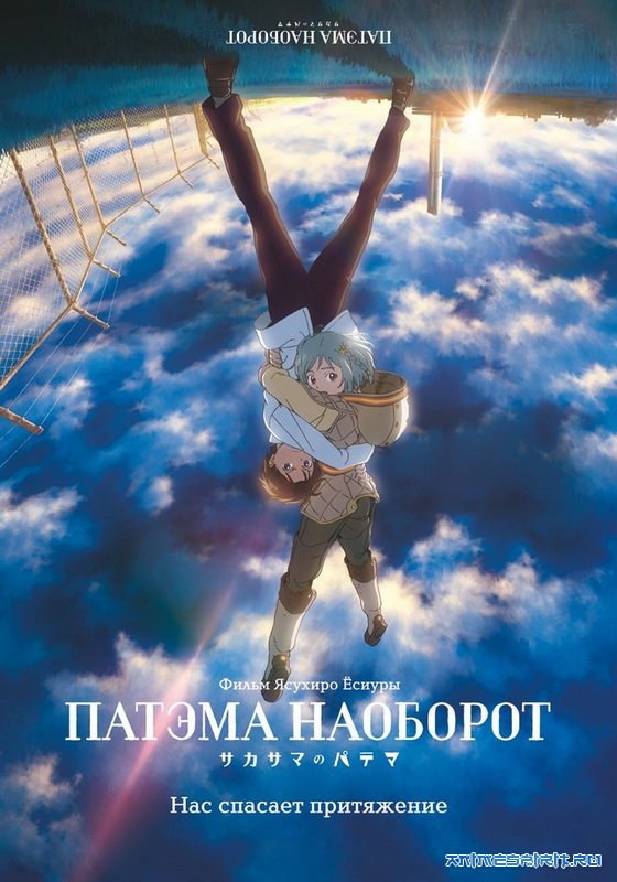 Описание: В результате произошедшей в прошлом ужасной катастрофы человечество разделилось на два народа. Для первого народа гравитация действует наоборот (люди и используемые ими вещи падают в небеса). Его представители не смогли жить на поверхности и ушли под землю. Для второго народа гравитация действует обычным образом и он живет на поверхности земли. Жизни этих народов практически не пересекаются и о существовании друг друга большая часть их не знает. Однако, у живущих на поверхности есть история о том что в прошлом грешники улетели на небеса. Поэтому в обществе считается недопустимым смотреть на небо и следует направлять свой взгляд на землю. В подземном мире, где повсюду распространяются туннели, в тёмных и тесных помещениях живут люди в защитных одеждах. Но, не смотря на такие условия, они стараются наслаждаться жизнью. Патема - принцесса в своей подземной деревне и любит исследовать туннели. Ее любимым местом является "Опасная зона", в которую запрещено ходить всем жителям деревни. Но чем запретнее место, тем большее любопытство оно вызывает, ведь никто так и не объяснил, что за опасность там ждёт. Во время очередной поездки в "Опасную зону" с Патемой неожиданно происходят странные события. История начинает разворачиваться, и скрытые тайны выходят на свет. от AniFilm: Спэшлы: Мулентий, Муневра, MezIdA, DemonOFmooN, NeaR, Drey. Фильм: DemonOFmooN, MezIdA.