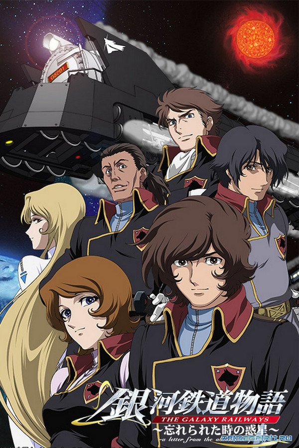 Описание: Для путешествий к окраинам космического пространства, человечество использует Галактические Железные дороги, по которым ездят модернизированные поезда. Для безопасного путешествия людей от одной планеты к другой, существуют. Космические Силы обороны sdf. Это элитные войска, которые защищают мирных путешественников от террористов, метеоритных дождей, и настроенной во зло инопланетной жизни. Анимация:#1 Галактический экспресс 999 ТВ (113 эп.), Адаптация манги, 1978 версия с русскими субтитрами #1.1 Галактический экспресс 999 ТВ (113 эп.), Адаптация манги, 1978 версия с русским озвучиванием #2 Галактический экспресс 999 п/ф (1 эп.), Адаптация манги, 1979#3 Галактический экспресс 999: Стеклянная Клэйр к/ф (1 эп.), Ремейк 3-го эп. оригинального сериала, 1980[/b] #4 Ginga Tetsudou 999: Kimi wa Senshi no You ni Ikira Special (1 эп.), Ремейк 12-13 эп. оригинального сериала, 1979#5 Галактический экспресс 999: Вечная странница Эмира Special (1 эп.), Ремейк 22-го эп. оригинального сериала, 1980#6 Ginga Tetsudo 999: Kimi wa Haha no You ni Aiseru Special (1 эп.), Ремейк 51-52 эп. оригинального сериала, 1980#7 #07 Прощай, Галактический экспресс 999: Терминал Андромеды - п/ф, продолжение оригинального сериала, 1981#8 Галактический экспресс 999: Вечная фантазия к/ф (1 эп.), Продолжение, 1998#9 Kasei Ryodan Dnasights Four-Nine к/ф(1 эп.), Предыстория оригинального сериала,1998#10 Галактические Железные Дороги ТВ (26 эп.), Продолжение оригинального сериала, 2003#11 Галактические Железные Дороги OVA (4 эп.), Продолжение, 2007#12 Галактические Железные Дороги ТВ (24 эп.), Продолжение, 2006#13 Ginga Tetsudou 999: Diamond Ring no Kanata e к/ф (1 эп.), Дополнение, 2009
