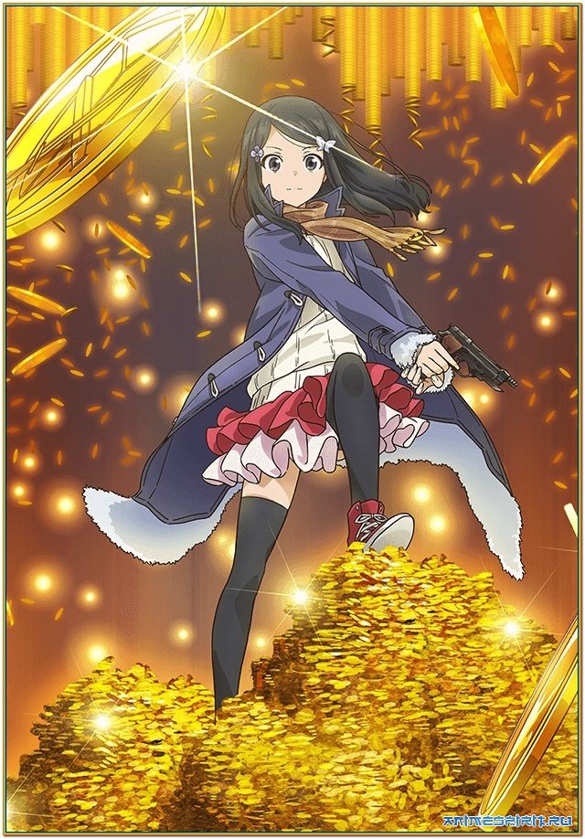 Описание: Восемнадцатилетняя девушка Мицуха Ямано, потерявшая свою семью из-за несчастного случая, однажды случайно падает со скалы и перемещается в другой мир, похожий на средневековую Европу. После тяжелого сражения с волком она узнает о том, что может в любой момент вернуться на Землю. Мицуха решает воспользоваться этой возможностью. Теперь её цель — накопить 80 000 золотых монет в другом мире, вернуться на родину и прожить там безбедную старость! Влиять на развитие неизвестного мира девушка не планирует, но если это будет жизненно необходимо, то не задумываясь пустит в ход пистолеты, которые она захватила с собой из нашей вселенной. © AniLibria